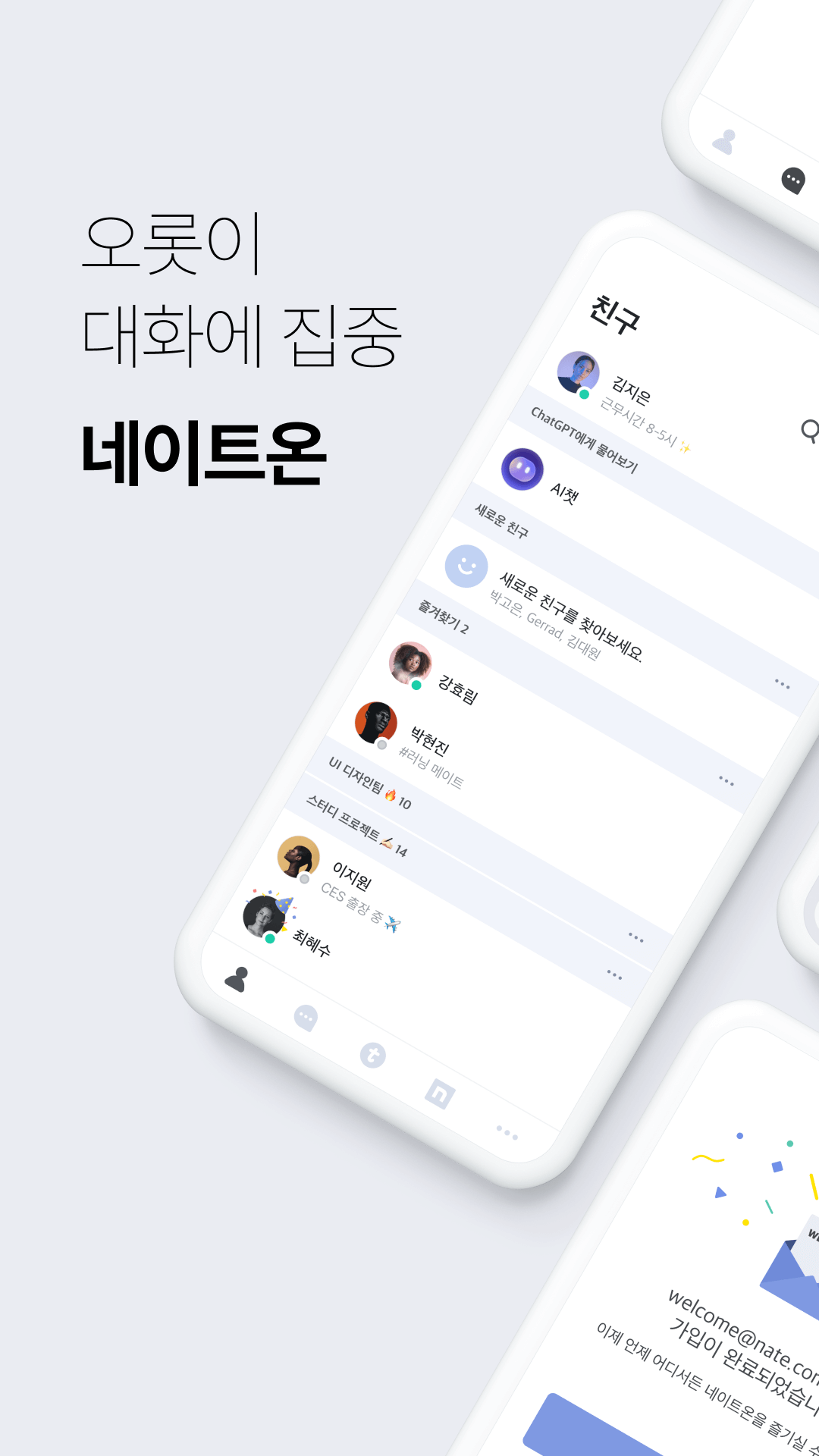 네이트온은 대한민국에서 오랜 기간 사랑받아온 커뮤니케이션 메신저로, 지금도 실시간 대화·파일 전송·음성·영상 통화 등 다양한 기능을 제공하며 개인과 업무 환경 모두에서 사용되고 있습니다. PC와 모바일을 모두 지원하여, 사용자들은 어디서든 동일한 계정으로 메시지를 주고받고, 파일을 공유하며, 그룹 채팅을 통해 팀 단위 소통까지 손쉽게 진행할 수 있습니다.