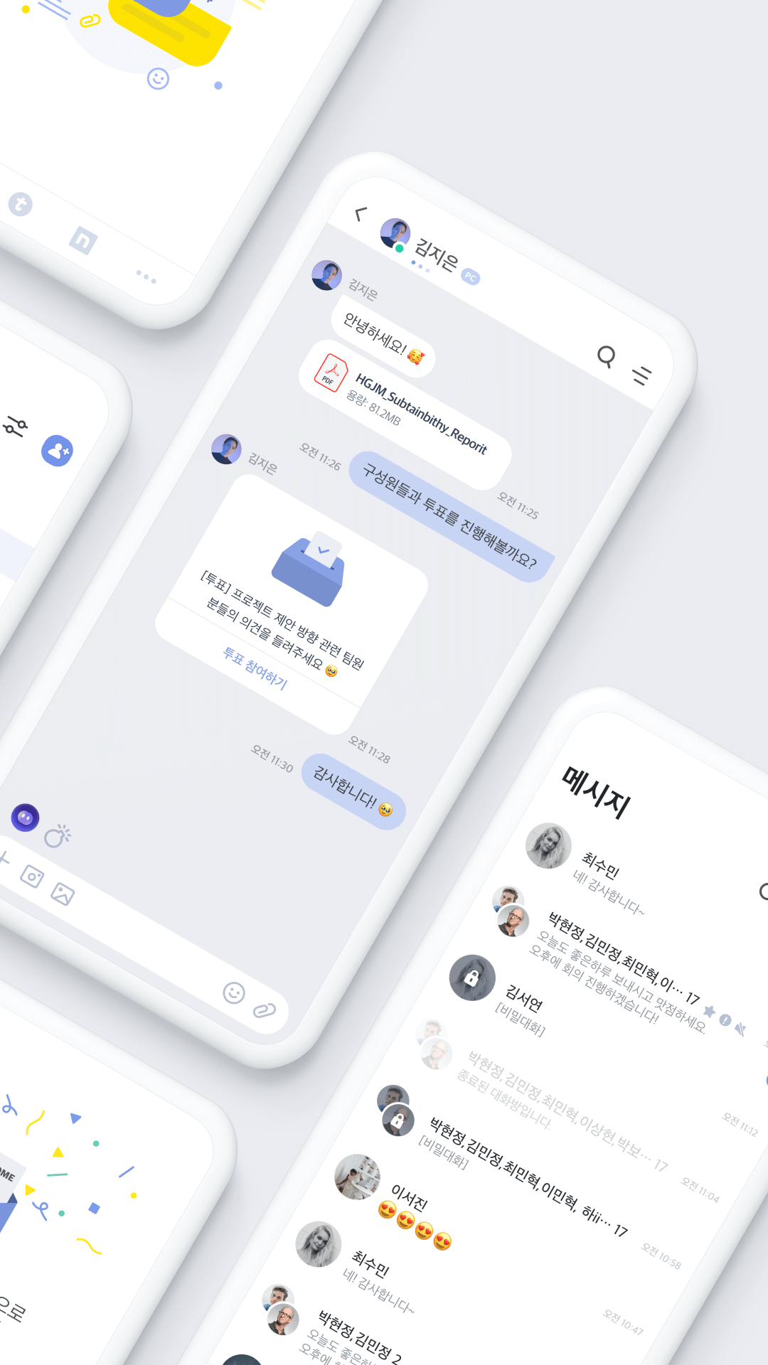 - 그룹 채팅: 여러 사람과 동시에 대화할 수 있는 그룹 채팅 기능을 지원해 프로젝트·업무 단위 소통에 적합합니다.
